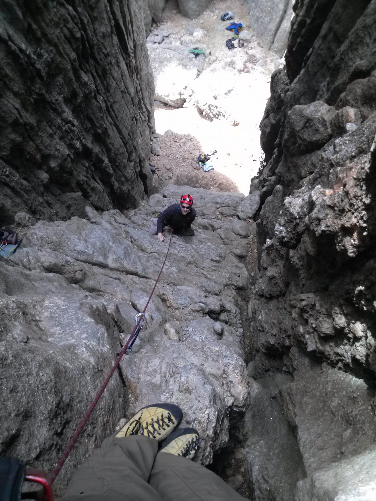 In the next picture you can see me coming up the second pitch. Where you can see Christine’s feet, that is only about half way up it.