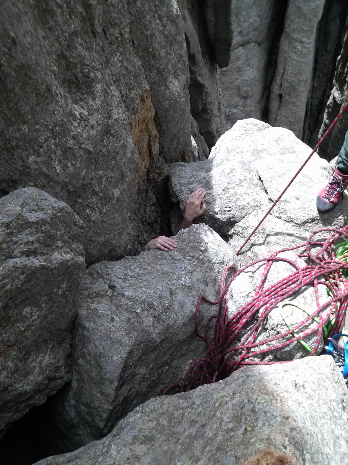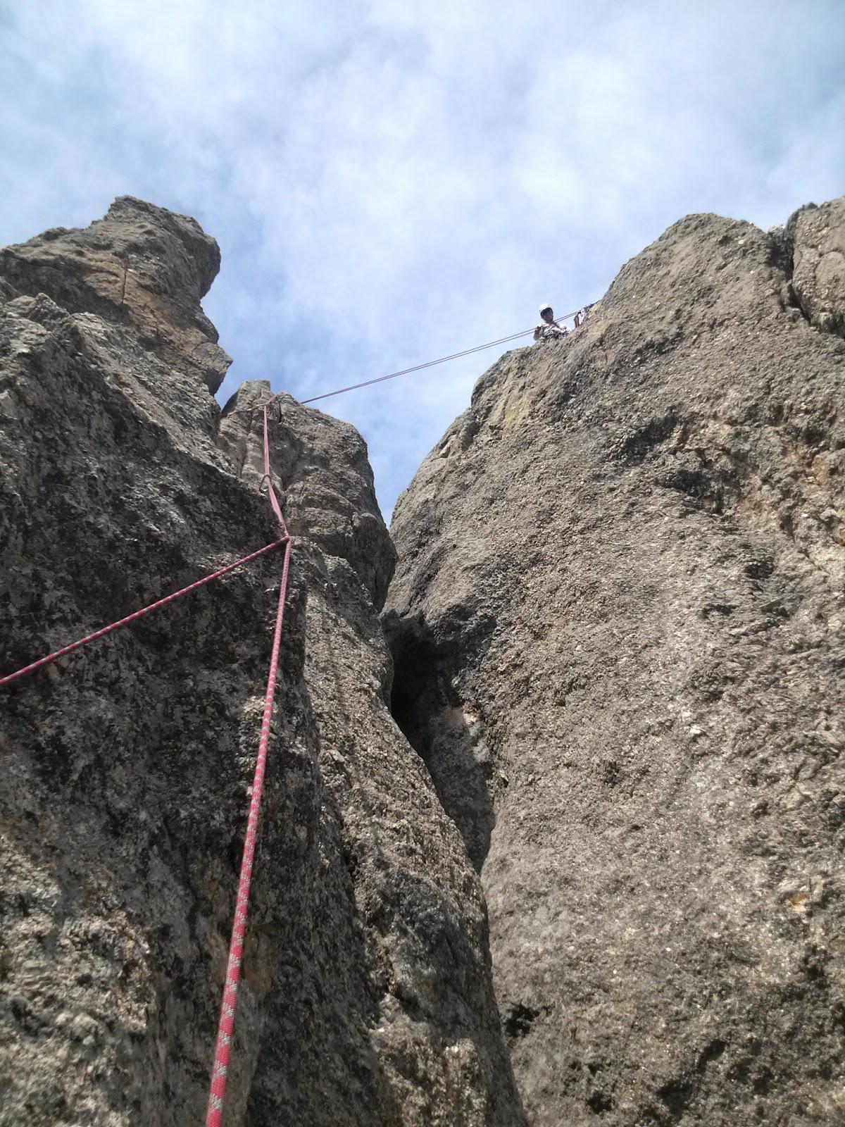 In the next picture you can see me coming up the second pitch. Where you can see Christine’s feet, that is only about half way up it.