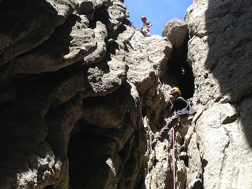 The first climb of the day was a rock spire called the Aquarium. I’m really not sure why it’s called that, but it was a very nice 3 pitch route, about 120 feet tall, with a rappel off of the back side of it when you’re done.