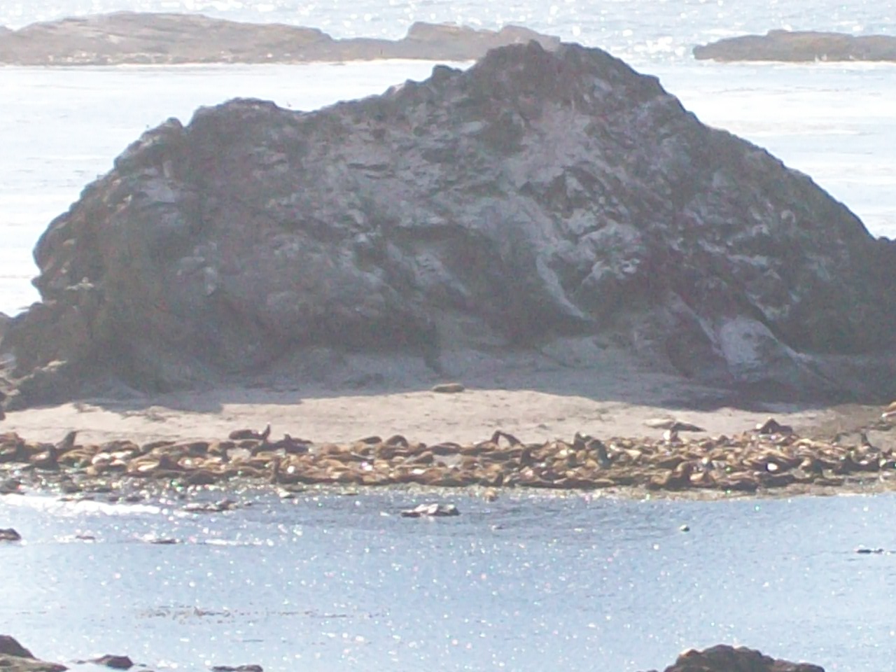 Here you can see the cliff side right in front of the main opening to the cave. You can see quite a few sea lions down below, and yes, all of that white stuff is evidence of a large bird population…