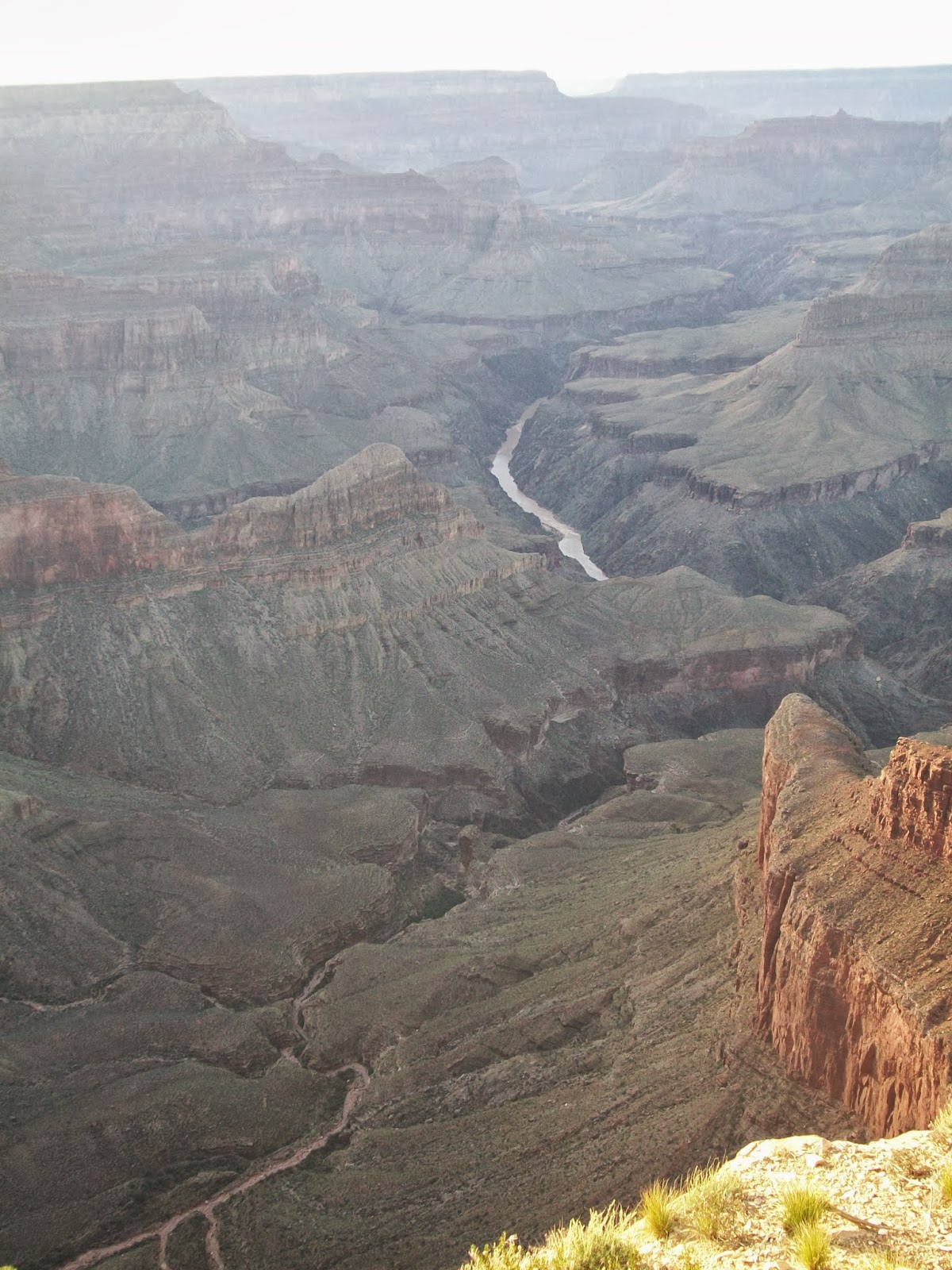 Driving up to the South Rim of the Grand Canyon, even once inside of the park, you would have no idea that the canyon lay ahead, not until you are walking up to it, only steps away, and the trees clear and you are suddenly at the edge. What a shocker this must have been to early explorers. Oh, man…can’t get through this way… 🙂