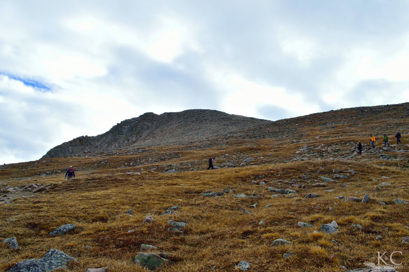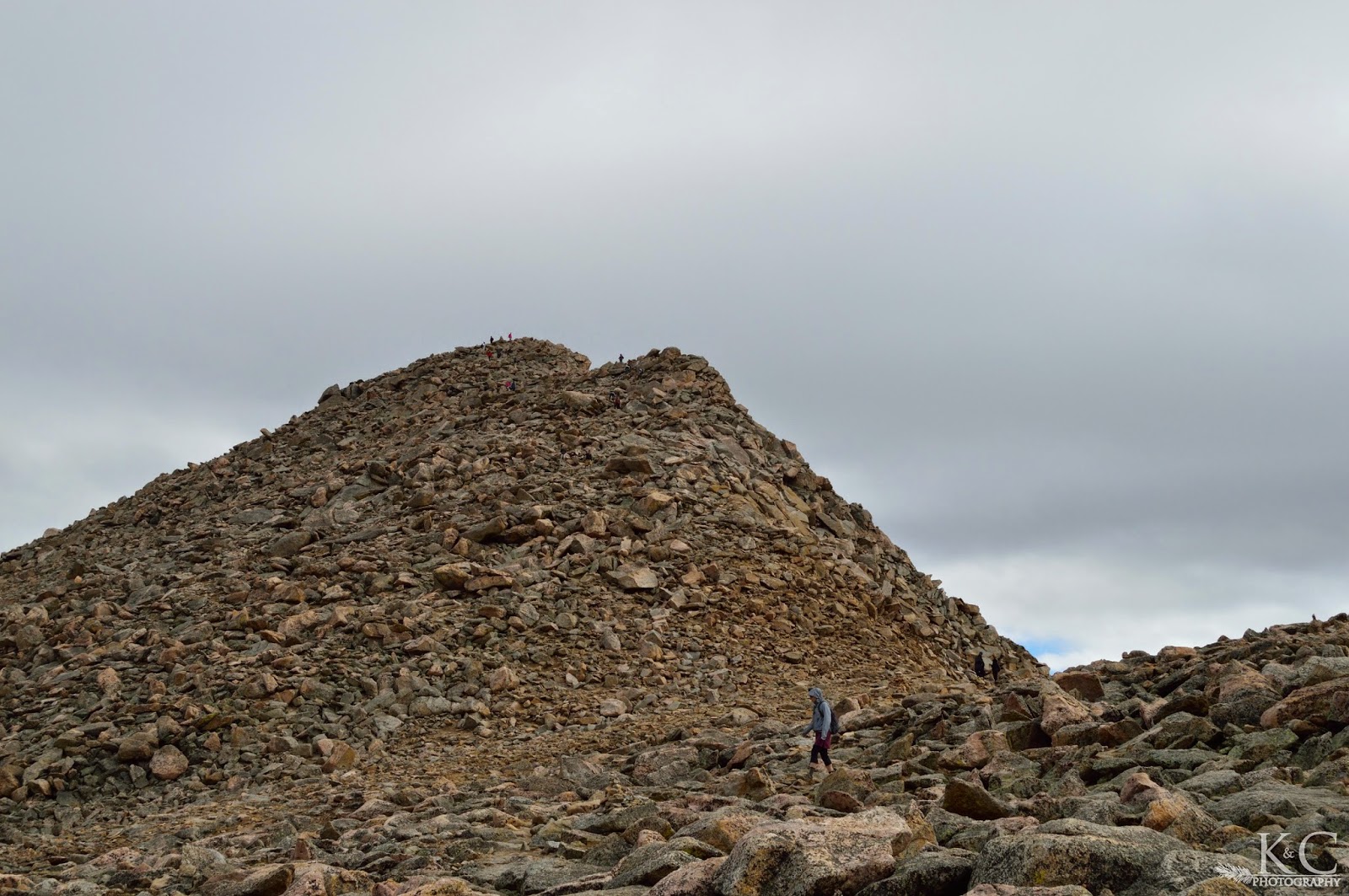 The first part of the trail heads out over a long section of boardwalks over some very marshy terrain. After crossing a river and making your way through some more mud, you reach the first steep section (notice the first ridge in the parking lot picture.) Up until this point I hadn’t really noticed the altitude. As soon as it starts to climb, I realized very quickly that we were already at 12,000ft. At this point the trail never really lets up. It goes from steep, back to kinda steep, to really really steep, to a boulder scramble at 14,000ft. The summit comes in at 14,065ft and the views all the way up are just amazing: