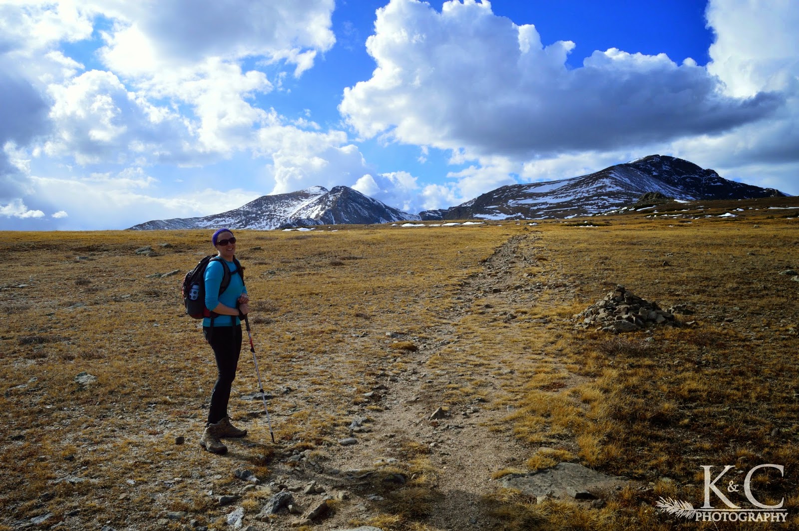 Originally we didn’t know how far up we wanted to go, only that we’d turn around when we felt like it. We were feeling good though and the weather was gorgeous, so we planned to at least get to the top of the snowfield and see what was up there. Turns out you come out into high alpine meadows, with other hills and mountains rising around you. It was really spectacular, like take your breath away kind of views all the way around. It’s the kind of place you twirl around, The Hills Are Alive / Sound of Music style. Up there you see James Peak and Mount Bancroft ahead, as well as Grays and Torreys, and to the left Mount Blue Sky and Mount Bierstadt in the distance.
