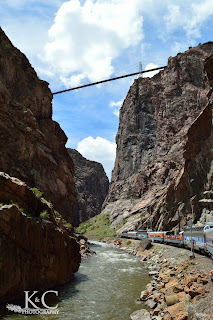 After exploring the park, we went into town and boarded the Royal Gorge Route Railroad Train. We’d booked seats in the Vista Dome car. This car has large windows that curve overhead for a good view. We had lunch and went out into the open air cars to enjoy the view from a totally different perspective. It’s pretty interesting to see the gorge from both above and below in the same day. We thought it was worth doing. Seeing how small the people on the bridge as well as the gondolas look from below was pretty striking!