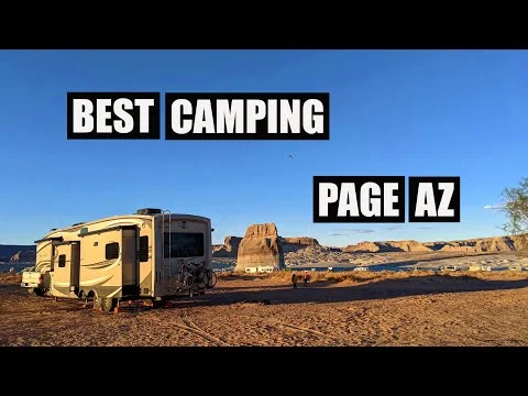 Lone Rock Beach is not actually in Page Arizona, but it is right over the border in Utah. Approximately 10 miles north of Glen Canyon Dam, you get a lot for your $14 a night fee here. They have bathrooms, dumpsters, and a dump station. There are no designated sites, but this area is massive! You can also stay for a full 14 days if you like.