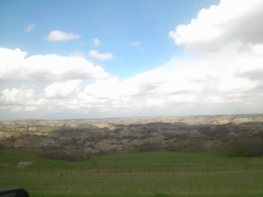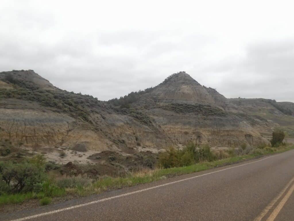 The park comprises a good portion of the Badlands of North Dakota.  Imagine a grassland that gives way to a beautiful mosaic of soft sedimentary rock interspersed with layers of clay mud and sand.