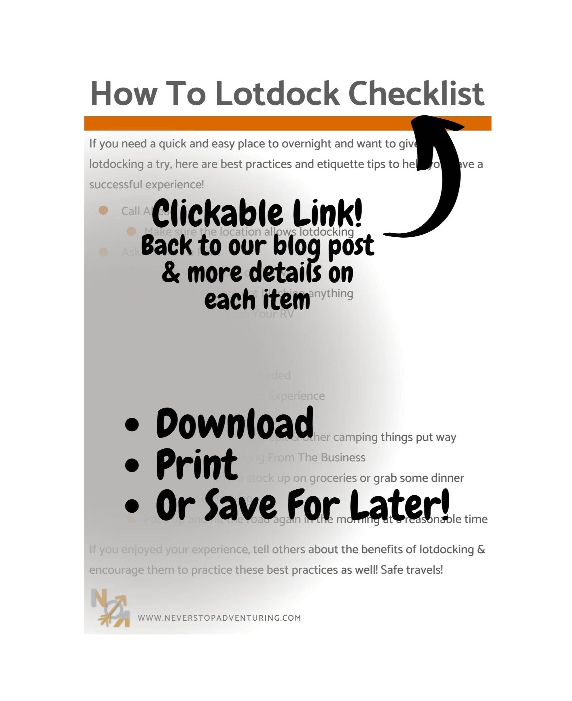 Are you planning your own lotdocking stay? Follow these best practices and etiquette tips to help you have a successful lotdocking experience.